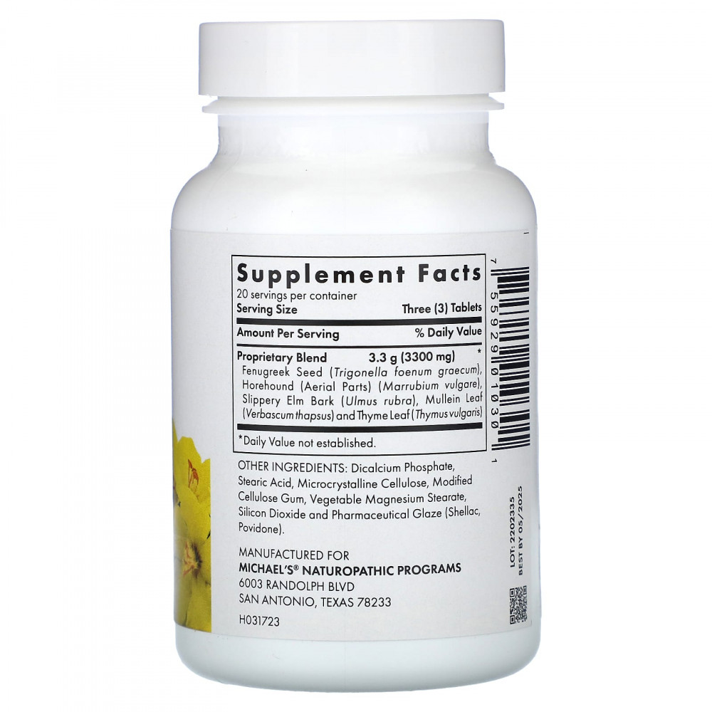 | Запатентованная смесь семена пажитника (Trigonella foenum graecum), шандра (надземные части) (Marrubium vulgare), кора вяза красного (Ulmus rubra), листья коровяка (Verbascum thapsus) и листья чабреца (Thymus vulgaris) | 3,3 г (3300 мг) | * |
