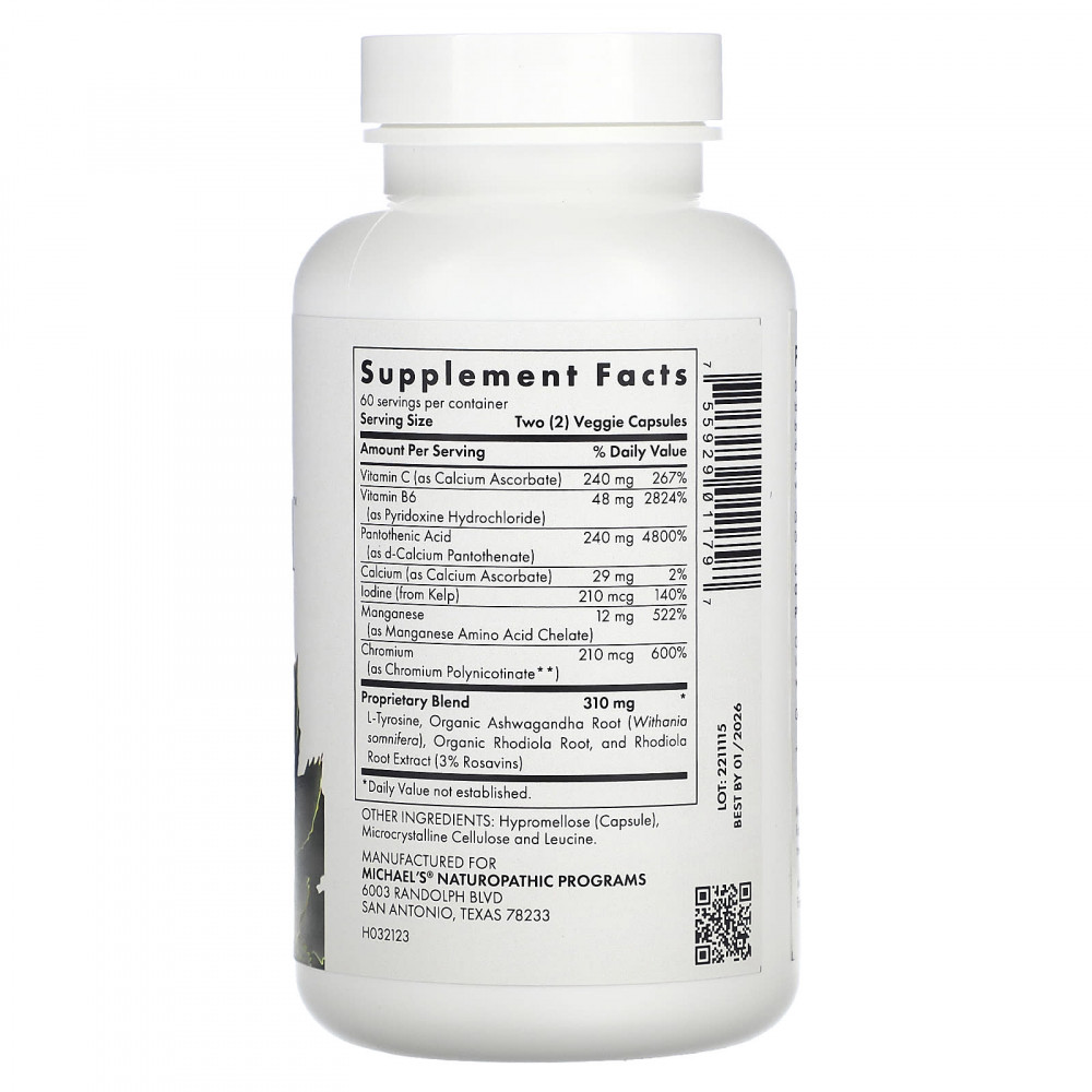Thyrodrenal ™ насыщает щитовидную железу необходимыми питательными веществами, необходимыми для оптимального функционирования: Витамин B6, йод, марганец, хром и L-тирозин участвуют в выработке гормонов щитовидной железы. Кроме того, Thyrodrenal ™ содержит пантотеновую кислоту, витамин С, ашвагандху и родиолу для питания и поддержки надпочечников.