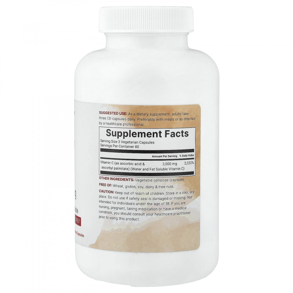 | Витамин C (в виде аскорбиновой кислоты и аскорбил пальмитата) (водо- и жирорастворимый витамин C) | 2 000 мг | 2222% |