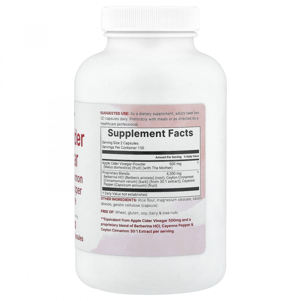 ** Эквивалент 500 мг яблочного уксуса и запатентованной смеси экстракта берберина гидрохлорида, кайенского перца и цейлонской корицы в соотношении 30:1 в 1 порции.