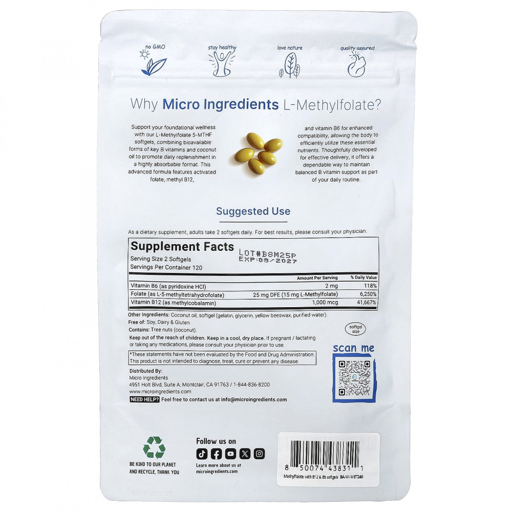 Поддержите хорошее самочувствие с помощью наших капсул с L-метилфолатом 5-MTHF, сочетающих биодоступные формы ключевых витаминов группы B и кокосовое масло для ежедневного восполнения в хорошо усваиваемом формате. Эта усовершенствованная формула содержит активированный фолат, метил B12 и витамин B6 для улучшенной совместимости, что позволяет организму эффективно использовать эти важные питательные вещества. Он тщательно разработан для эффективной доставки и предлагает надежный способ сохранения сбалансированной поддержки витамина B в рамках вашего ежедневного рациона.
