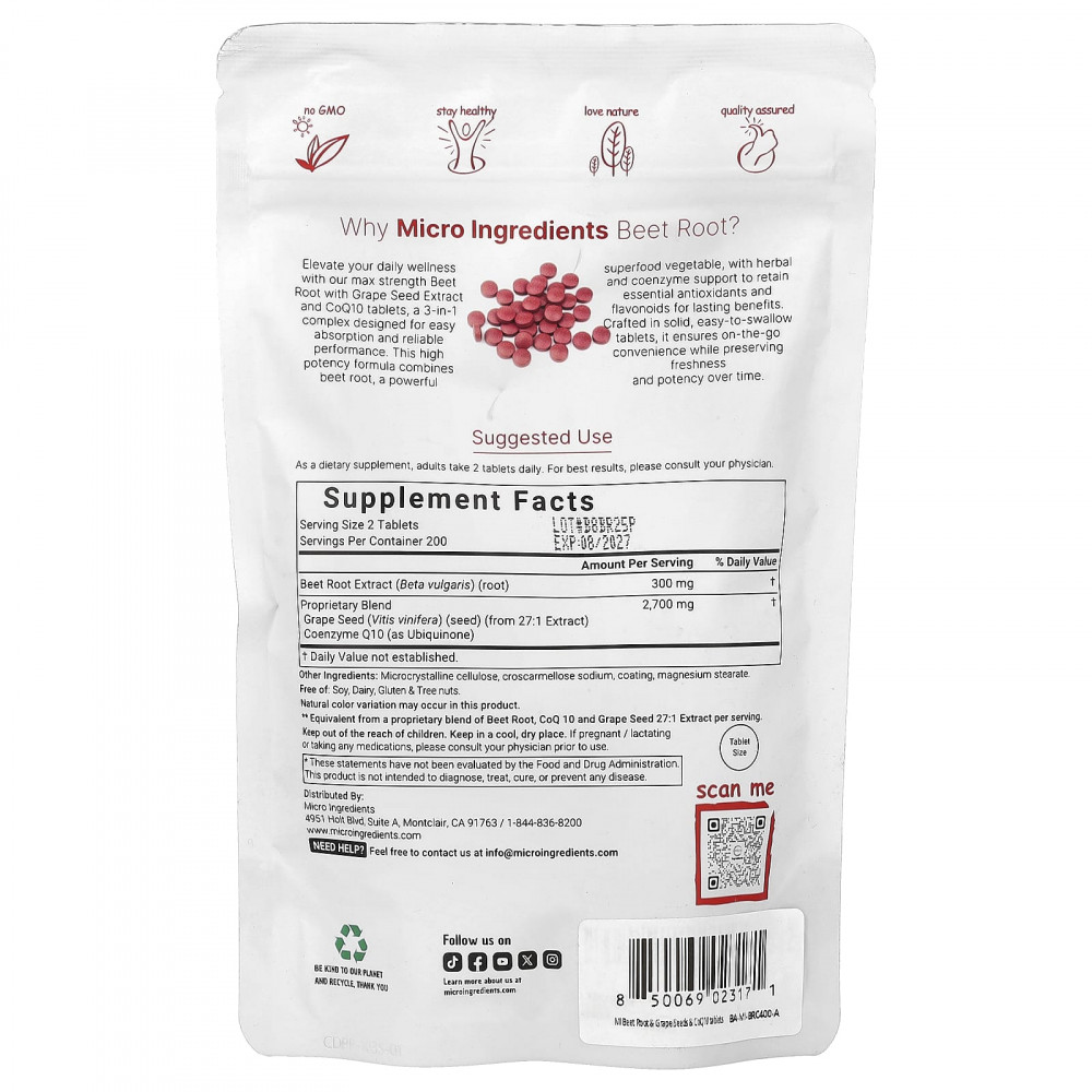 Улучшайте ежедневное самочувствие с помощью наших таблеток свеклы с экстрактом виноградных косточек и коэнзима Q10 максимальной силы действия - комплекса 3 в 1, разработанного для легкого усвоения и надежной эффективности. Эта высокоэффективная формула сочетает в себе корнеплод свеклы, мощный овощ-суперфуд, с растительной и коэнзимной поддержкой, позволяющей сохранить необходимые антиоксиданты и флавоноиды для обеспечения долгосрочной пользы. Изготовленный в виде цельных таблеток, которые легко глотать, он удобно брать с собой, сохраняя свежесть и эффективность в течение длительного времени.