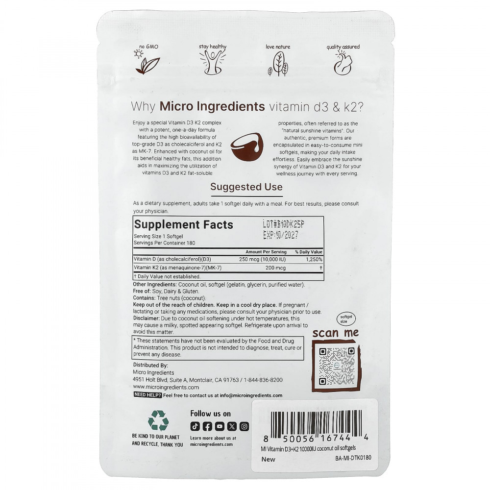 Наслаждайтесь специальным комплексом витаминов D3 и K2 с эффективной формулой для приема один раз в день, обеспечивающей высокую биодоступность первоклассного витамина D3 в виде холекальциферола и витамина K2 в виде менахинона-7. Эта добавка, обогащенная кокосовым маслом благодаря содержанию полезных жиров, помогает максимально использовать жирорастворимые витамины D3 и K2, которые часто называют "натуральными солнечными витаминами". Наши аутентичные формы премиального качества заключены в удобные миникапсулы, что упрощает ежедневный прием. Наслаждайтесь синергией витаминов D3 и K2 для хорошего самочувствия в каждой порции.