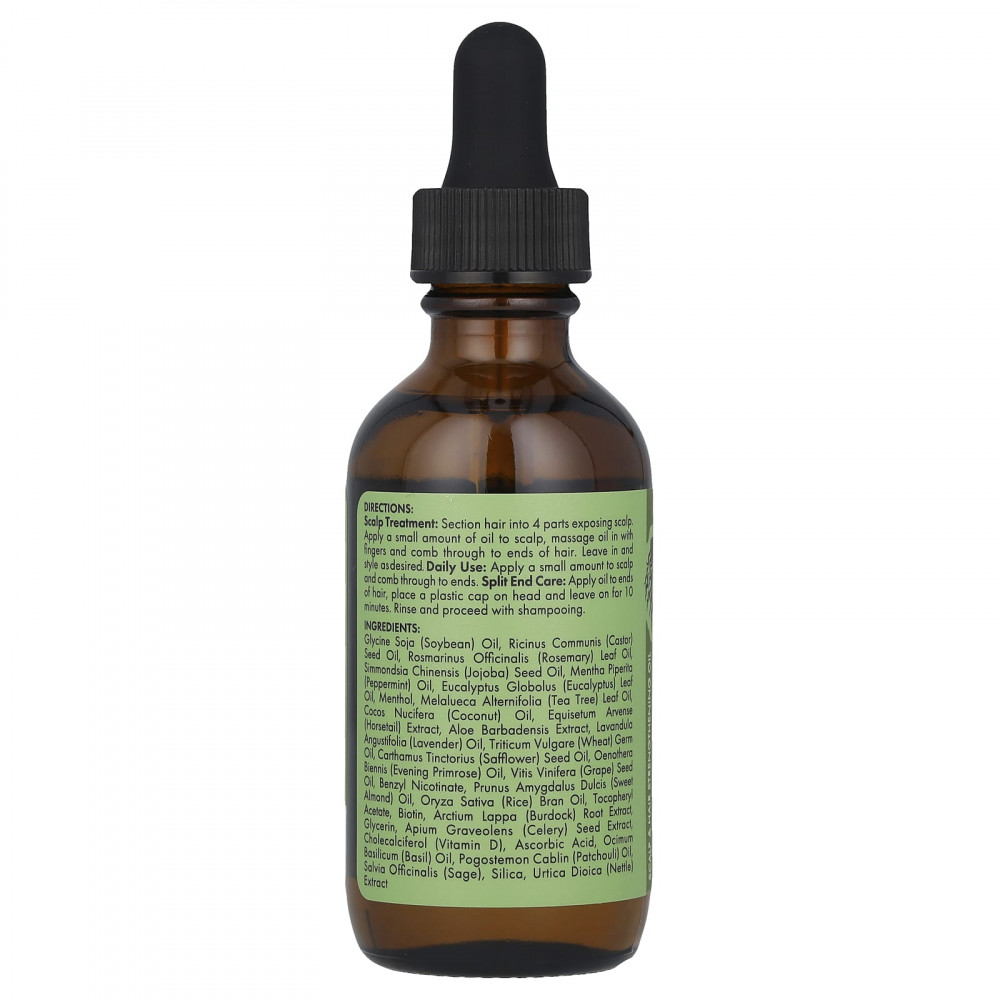 Содержит розмарин, мяту и биотин, которые тонизируют волосы и кожу головы, делая волосы более здоровыми, сильными и длинными, а также придавая блеск и гладкость волосам с секущимися кончиками. Отлично подходит для волос всех типов и любой текстуры, в том числе для заплетённых в косички и накладных волос, а также для волос с химической завивкой.