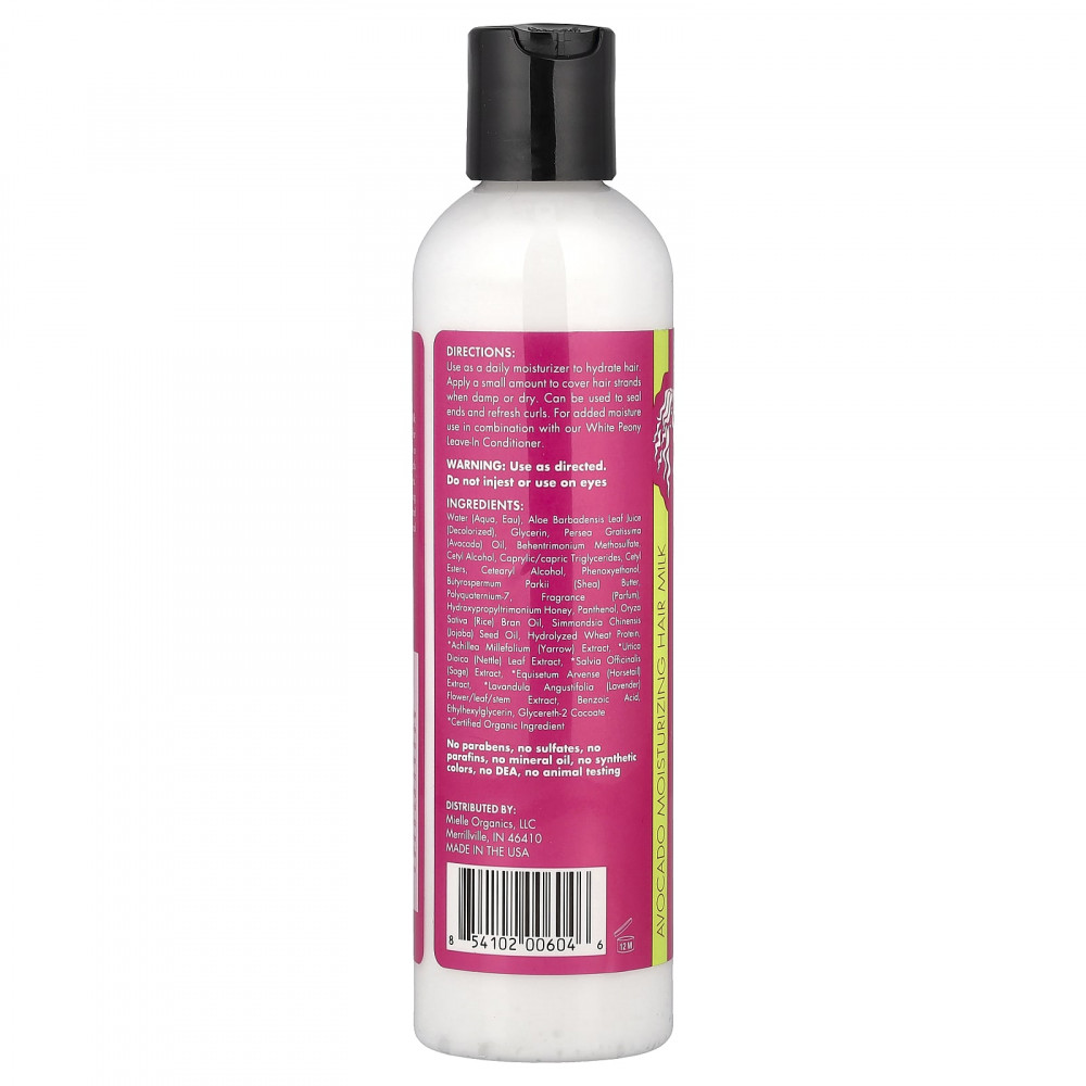 Наше увлажняющее молочко для волос с авокадо обеспечивает увлажнение сухих, испытывающих жажду волос. В его состав входит смесь увлажняющих экстрактов растений и сертифицированных органических ингредиентов. Отлично подходит для разглаживания и смягчения волос, увлажняет их и делает послушными. Содержит натуральные и органические ингредиенты.