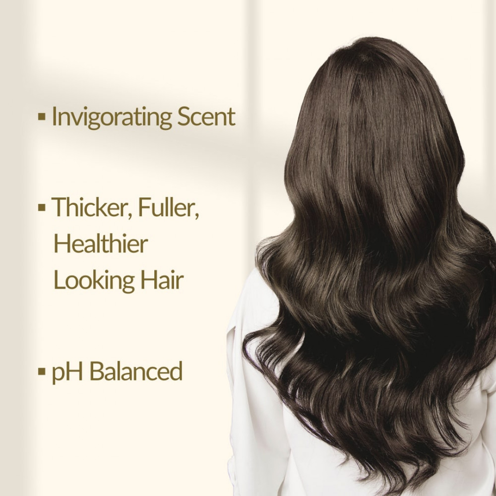 Этот терапевтический шампунь для густоты волос с цитрусовым ароматом обогащён биотином, пантенолом, киноа, протеинами льна, семенами боба садового и экстрактом листьев мушмулы японской. Шампунь сбалансирован по уровню pH, не содержит сульфатов, парабенов, фталатов и является этичным продуктом.