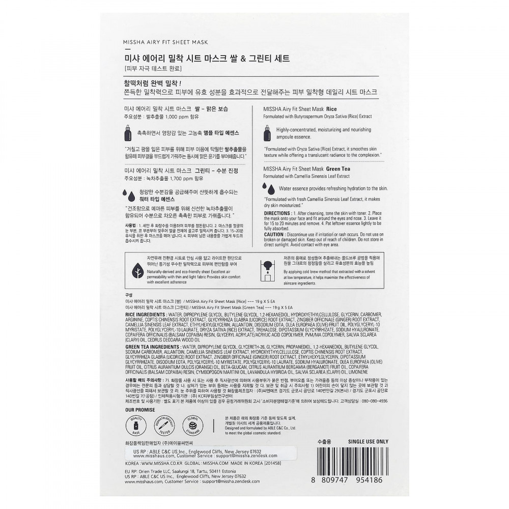 Тканевая маска с рисом Missha Airy Fit