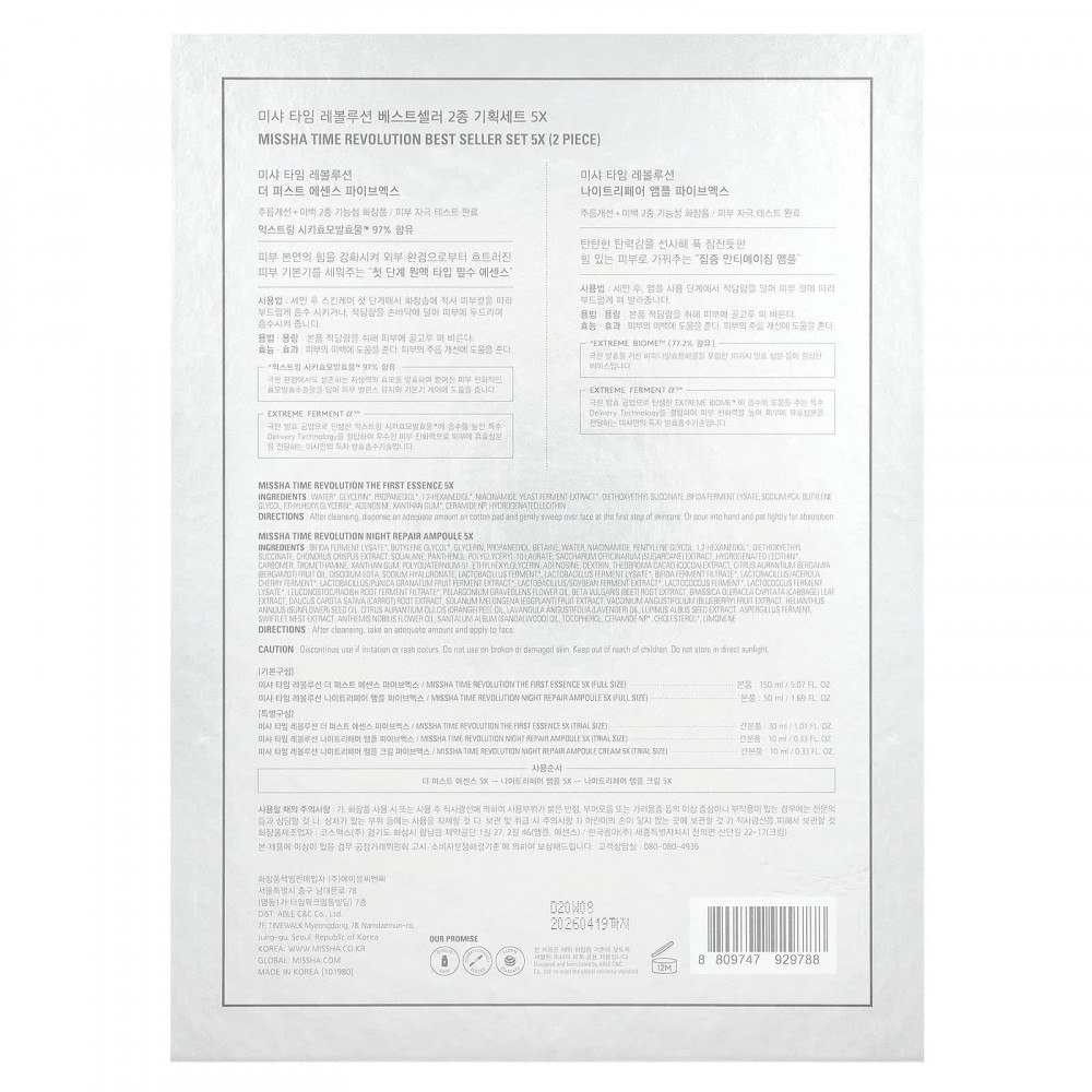 Бестселлеры MISSHA, которые открывают для себя более яркую, красивую и сияющую кожу. Содержит нашу бестселлерную эссенцию, которая увлажняет, очищает и успокаивает кожу, и нашу самую продаваемую ампулу, которая увлажняет, укрепляет, восстанавливает и питает кожу в течение ночи.