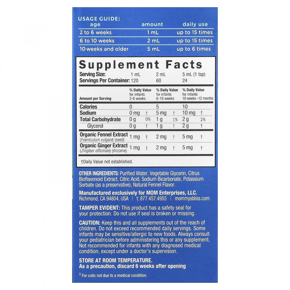 Переверните флакон и вытяните шприц до нужной отметки. Держите ребенка в вертикальном положении. Не давайте средство ребенку, если он в этот момент плачет. Вводите медленно, по несколько капель, позволяя ребенку каждый раз глотать. Давать ребенку медленно, в уголок рта или за щеку. Использовать с прилагаемым шприцом или пипеткой. Можно добавить отмеренное количество средства в бутылочку для кормления с медленным потоком. Не смешивать с детской смесью или грудным молоком. Не давайте средство во время кормления. Не давайте младенцам младше 2 недель или весом менее 3 кг (7 фунтов).
