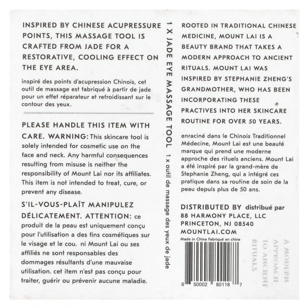Вдохновленный китайскими акупрессурными точками, этот массажный инструмент изготовлен из нефрита для восстанавливающего и охлаждающего воздействия на область вокруг глаз.