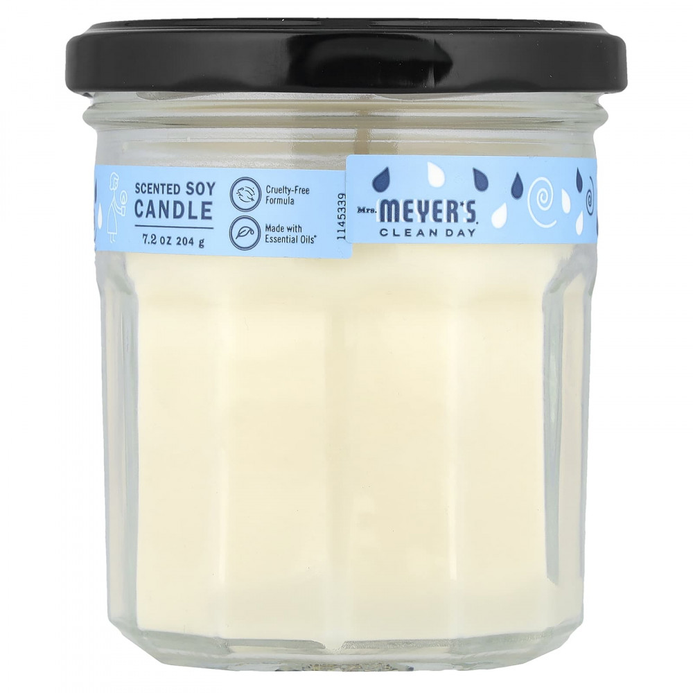Ароматические свечи Mrs. Meyers Clean Day изготовлены из растительного, хлопкового и соевого воска. Хлопковый фитиль, не содержащий свинца, может гореть 35 часов и обеспечивает свежий, чистый и свежий аромат дождевой воды с цветочными нотками белых цветов.