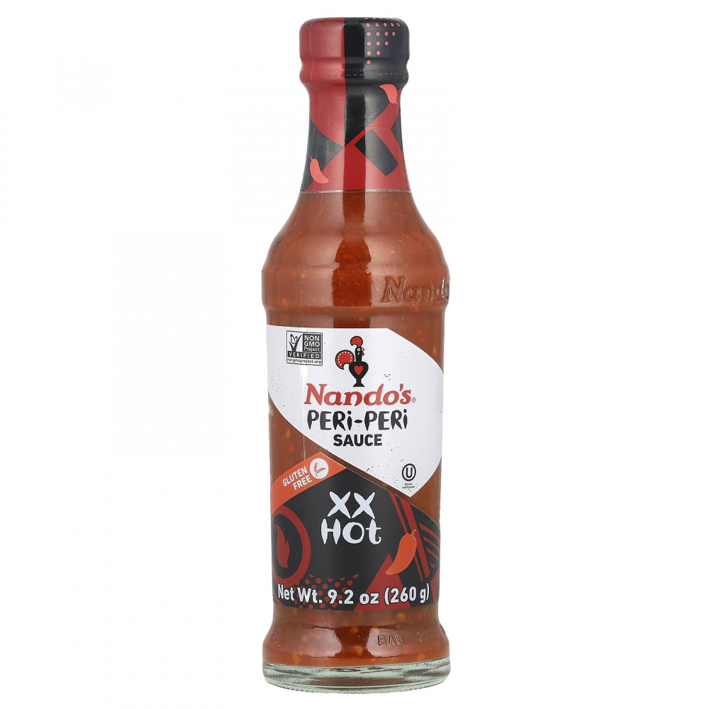 Наш соус PERi-PERi изготовлен из африканского перца чили с птичьим глазом и смеси ингредиентов - созревших на солнце лимонов, лука, чеснока и специй. Этот очень яркий с множеством вкусов! PERi-PERi - это сердце и душа Nando, а также секретный ингредиент наших ресторанов по всему миру.