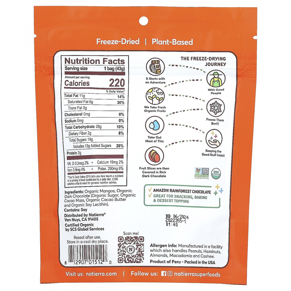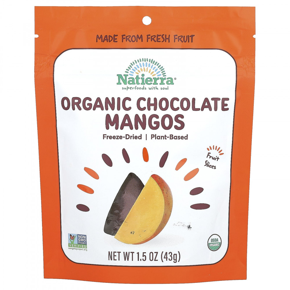 Органическое манго, органический темный шоколад (органический сахар, органическая какао-масса, органическое какао-масло и органический лецитин из сои).