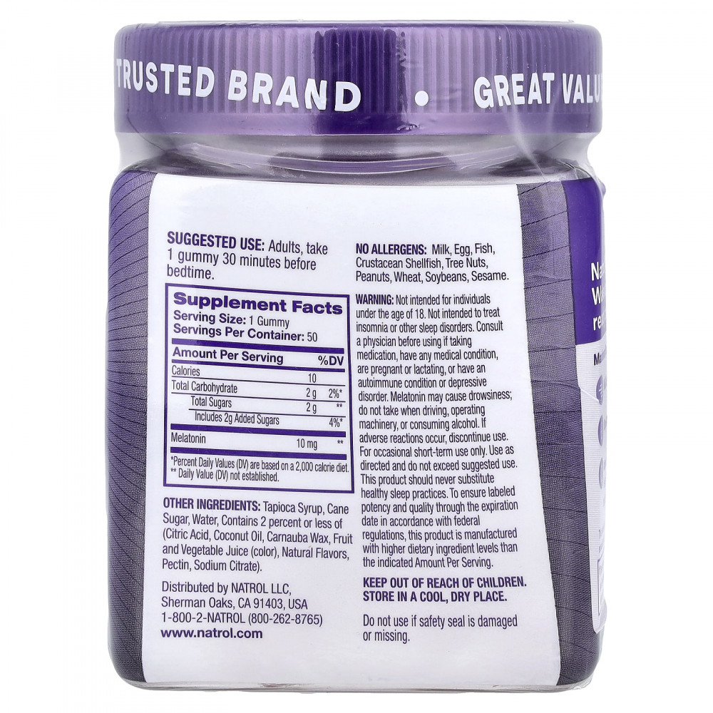 Не предназначено для лиц младше 18 лет. Не предназначено для лечения бессонницы или других нарушений сна. Перед началом применения при приеме лекарств, при наличии каких-либо заболеваний, беременности, кормления грудью, аутоиммунных заболеваний или депрессивного расстройства следует проконсультироваться с врачом. мелатонин может вызывать сонливость; не принимать в случае управления автомобилем, оборудованием или в случае употребления алкоголя. При возникновении побочных реакций следует прекратить использование. Только для краткосрочного использования. Применять согласно инструкции, не превышая рекомендованную дозировку. Этот продукт никогда не должен заменять здоровый сон. Чтобы обеспечить указанные на этикетке эффективность и качество в течение срока годности в соответствии с федеральными нормативными требованиями, данный продукт производится с более высоким уровнем пищевых ингредиентов, чем указанное количество на порцию.