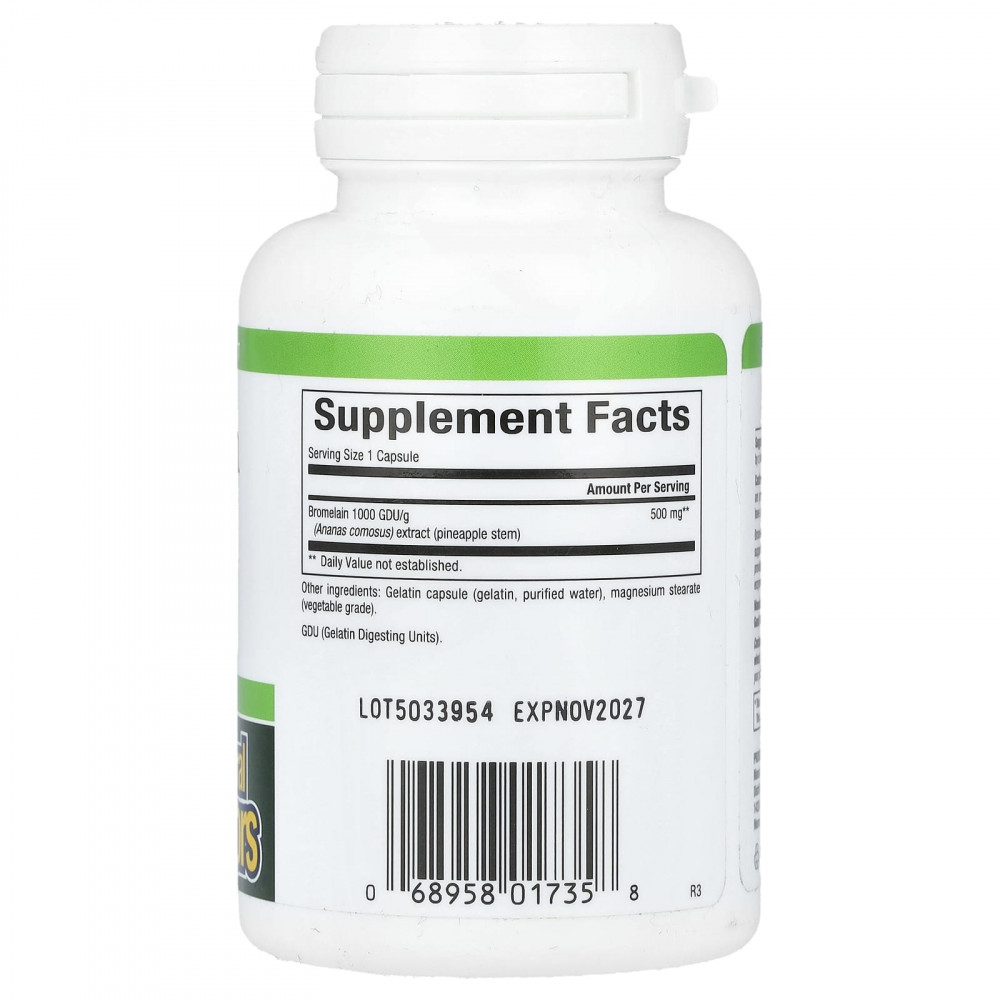 Бромелаин — это фермент, выделенный из стебля ананаса, который используется для поддержки работы пищеварительной системы. Natural Factors использует только бромелаин повышенной силы действия, обеспечивающий 1000 единиц расщепления желатина и 1500 единиц MCU (единиц свертывания молока) на 1 грамм.