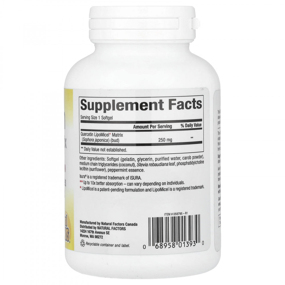 Уникальные антиоксиданты, содержащиеся в кверцетине, поддерживают здоровье кровеносных сосудов. Наша уникальная запатентованная технология создаёт жидкую мицеллярную форму, в которой кверцетин рассеивается на крошечные микрокапли, тем самым создавая превосходные условия для лучшего усвоения.