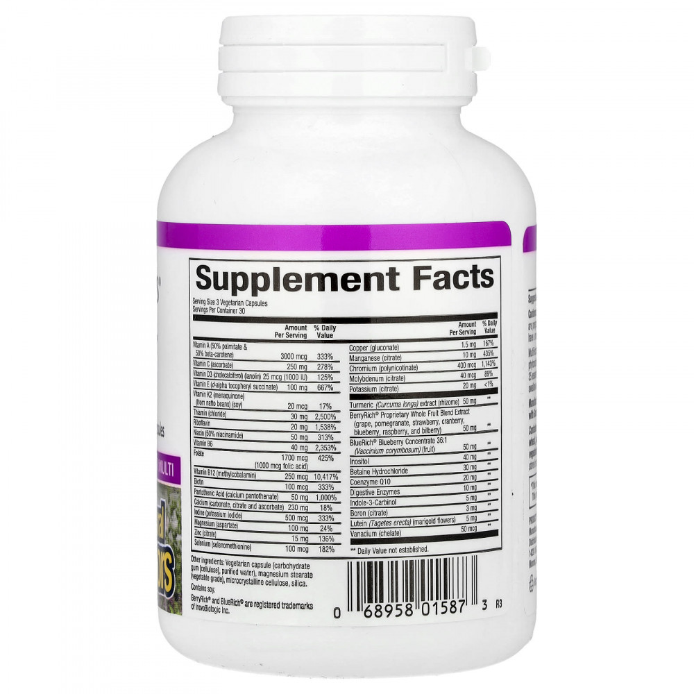 MultiFactors содержит специальные комбинации витаминов, минералов и фитонутриентов для удовлетворения уникальных ежедневных потребностей женщин старше 50 лет. Он содержит более 35 незаменимых питательных веществ, ферментов, антиоксидантов и травяных экстрактов всего в 3 вегетарианских капсулах, которые легко глотать.
