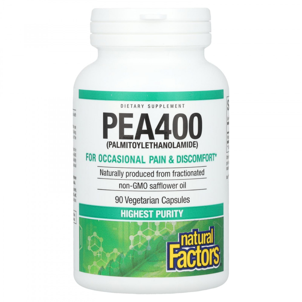 ПЭА (пальмитоилэтаноламид) — это соединение, похожее на жирные кислоты, которое естественным образом содержится в пищевых продуктах. ПЭА от Natural Factors производится натуральным способом из фракционированного сафлорового масла без ГМО. Затем он подвергается процессу микронизации для улучшения растворимости и усвоения. Доказано, что ПЭА помогает справляться с эпизодическими болями и дискомфортом.