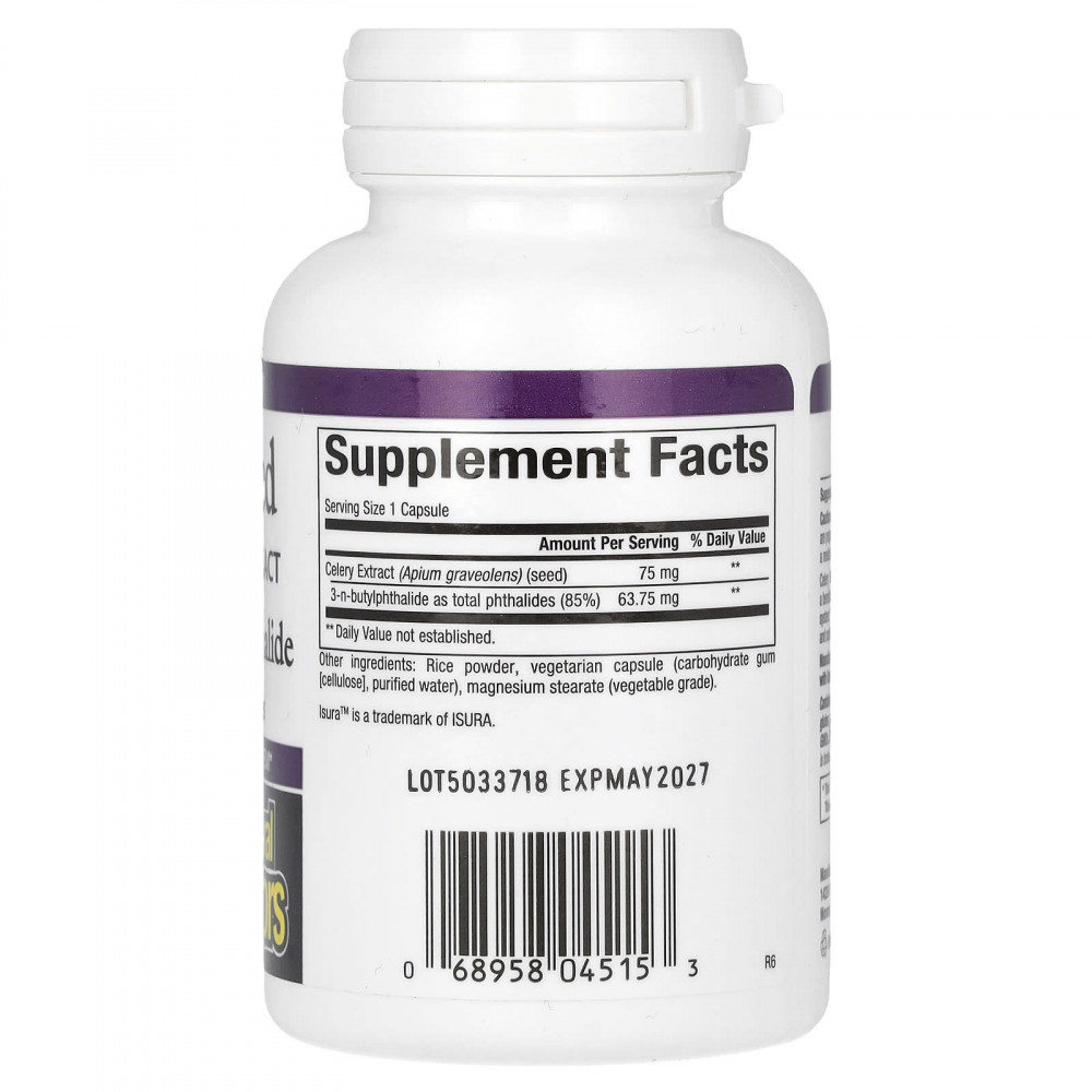 Экстракт семян сельдерея состоит из 3-н-бутилфталида в виде общего фталида (85%) — полезного соединения, уникального для сельдерея, которое обеспечивает естественную поддержку системы кровообращения. Традиционно используется травниками как ветрогонное средство, а также для улучшения кровообращения и сердечно-сосудистой системы.