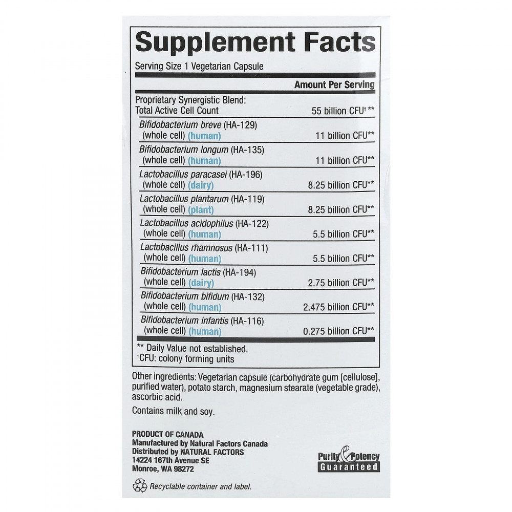 Кишечная оболочка не требуется для всех штаммов пробиотиков. Что касается желудочной кислотостойкости, не все штаммы одинаковы. Компания Natural Factors тщательно отобрала штаммы, от природы устойчивые к кислотам, чтобы их можно употреблять в любое время, независимо от приема пищи, а также безопасно доставлять в кишечник целыми и невредимыми. Наши штаммы проверяются на жизнеспособность в желудке, чтобы гарантировать оптимальное усвоение и эффективность.