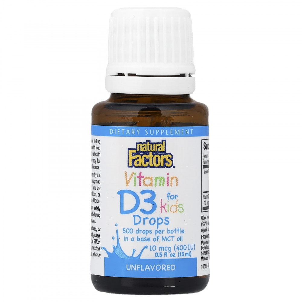 Витамин D3 необходим для укрепления костей и зубов, поскольку он увеличивает усвоение организмом кальция из пищи. Его роль в регулировании уровня кальция также помогает регулировать работу иммунной системы и поддерживать здоровье нервов и мышц. Витамин D3 — эффективная жидкая добавка, в которой этот витамин тщательно смешан со среднецепочечными триглицеридами (полученными из сертифицированных экологически чистых пальмоядрового и кокосового масел) и льняным маслом. В одной маленькой капле содержатся 10 мкг (400 МЕ) витамина D3.