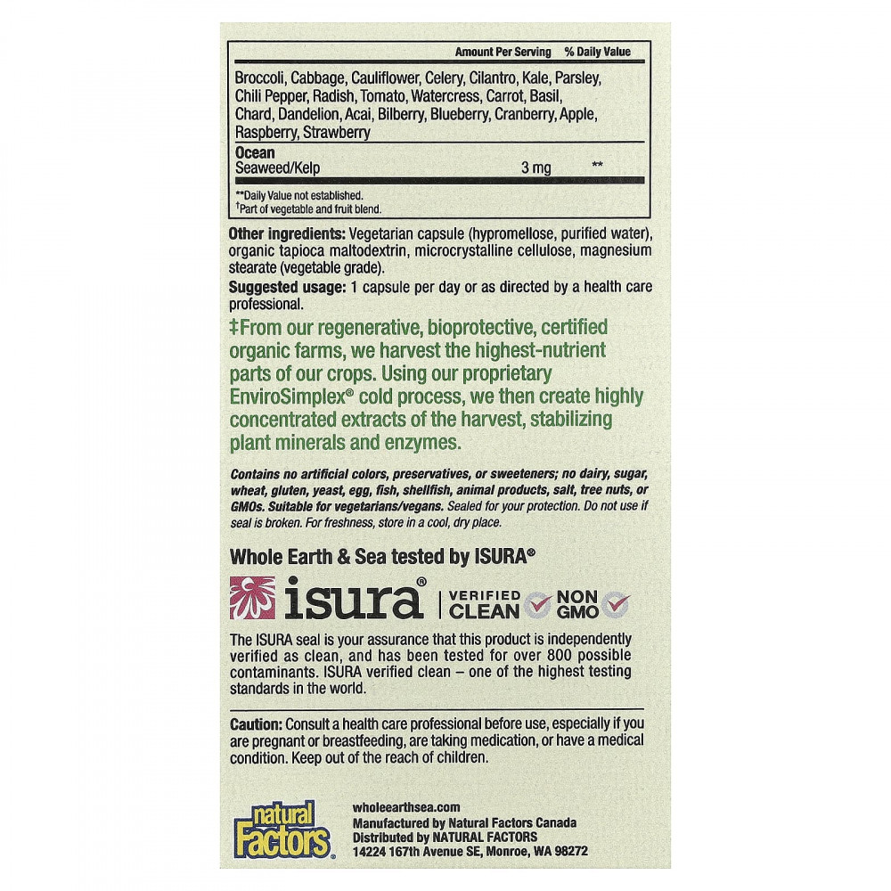 | ** Суточная норма не определена. † Входит в состав смеси овощей и фруктов. ‡ На наших регенерирующих, биозащитных, сертифицированных органических фермах мы собираем самые питательные компоненты наших культур. Затем, используя наш запатентованный холодный процесс EnviroSimplex®, мы создаем высококонцентрированные экстракты урожая, стабилизирующие растительные минералы и ферменты. | ||