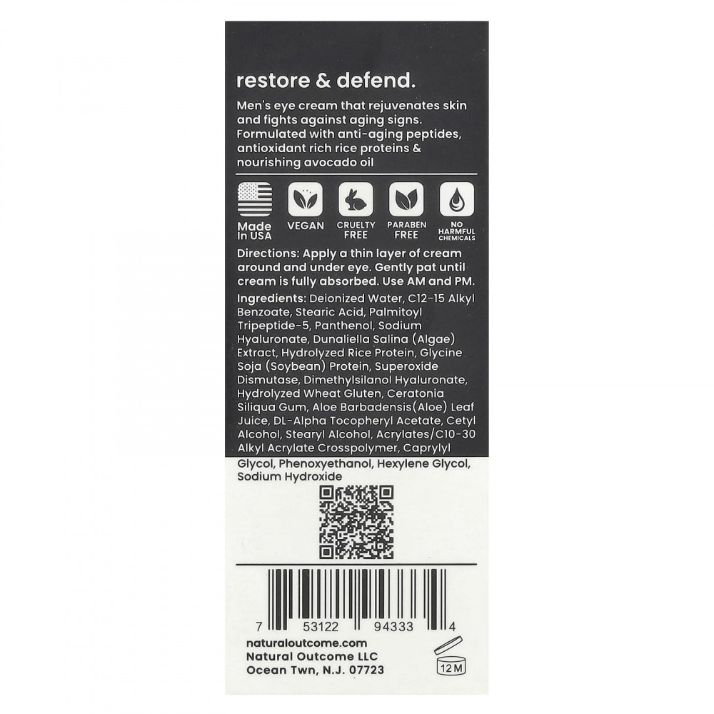 Крем для кожи вокруг глаз для мужчин, который омолаживает кожу и борется с признаками старения. Содержит антивозрастные пептиды, рисовые протеины, богатые антиоксидантами, и питательное масло авокадо.