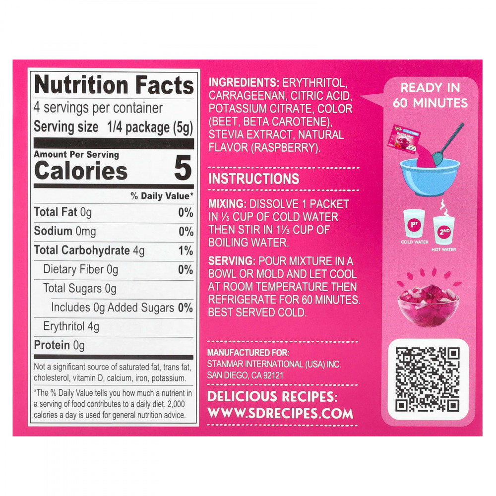 Эритритол, каррагинан, лимонная кислота, цитрат калия, краситель (свекла, бета-каротин), экстракт стевии, натуральный ароматизатор (малина).
