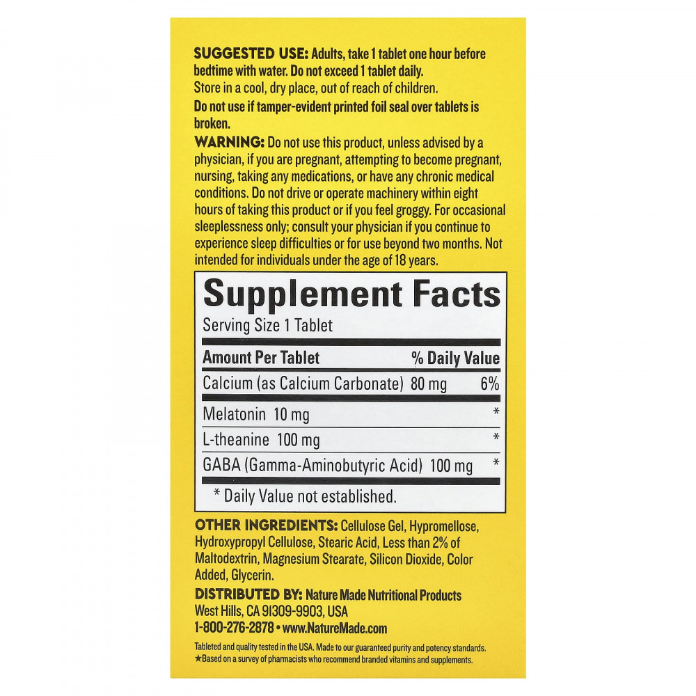 3 преимущества в 1 смеси: L-теанин и ГАМК, которые помогают расслабиться и успокоиться, мелатонин с немедленным высвобождением, который помогает быстрее заснуть, и мелатонин с замедленным высвобождением для поддержания качества сна.