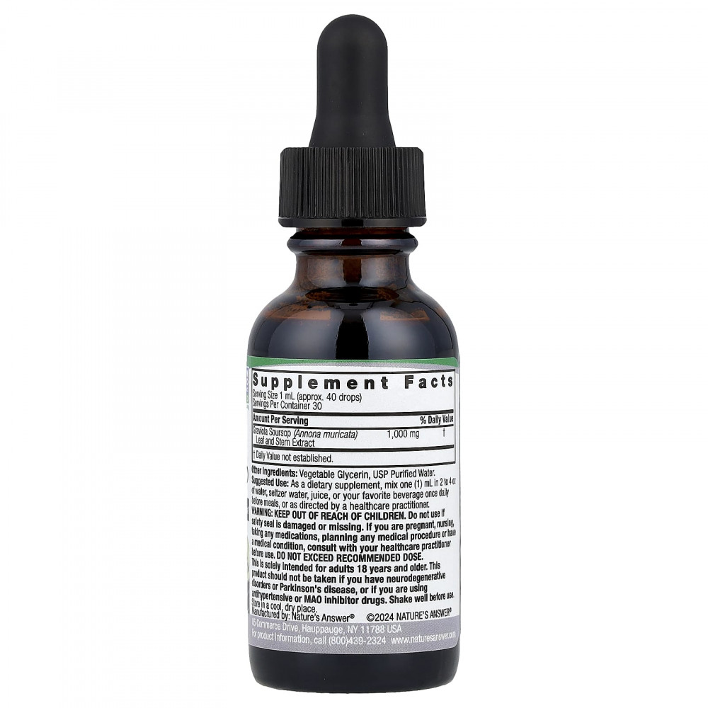 Сметанное яблоко, также известное как гравиола (по-научному Annona muricata), - это тропический фрукт, произрастающий на дереве, произрастающем в Центральной и Южной Америке, на Карибах и в некоторых частях Африки. Плоды крупные, зеленые, с колючками снаружи, с мягкой, белой волокнистой мякотью внутри. Наша передовая технология Botanical Fingerprint Technology® обеспечивает чистоту, идентифицируя уникальные «отпечатки пальцев» каждого растения. Наш безалкогольный экстракт гравиолы сметанного яблока - это высококонцентрированный травяной экстракт. Каждая порция объемом 1 мл содержит эквивалент 1000 мг сушеной травы, обеспечивая традиционные преимущества этого проверенного временем растения.