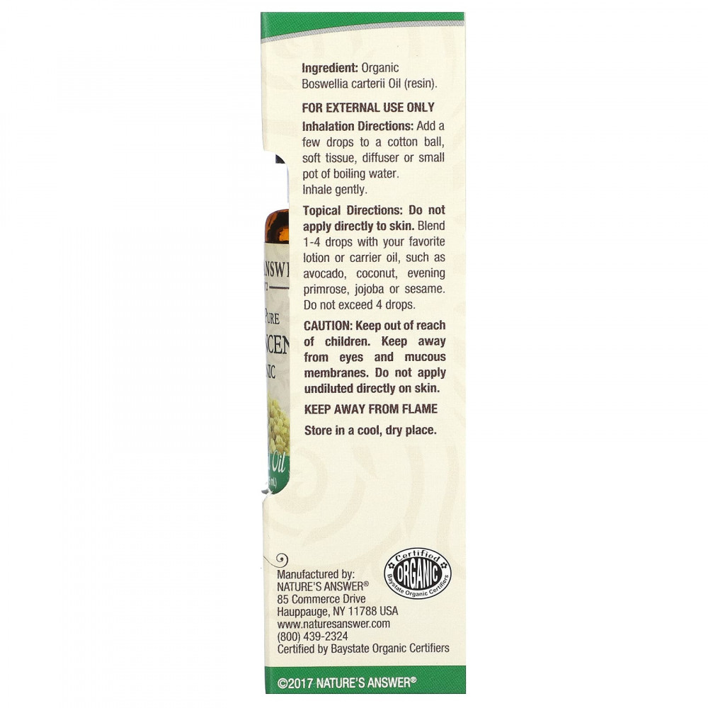 Будучи пионером в технологии растительных экстрактов с 1972 года, Natures Answer® поставляет на 100% чистые сертифицированные органические эфирные масла.
