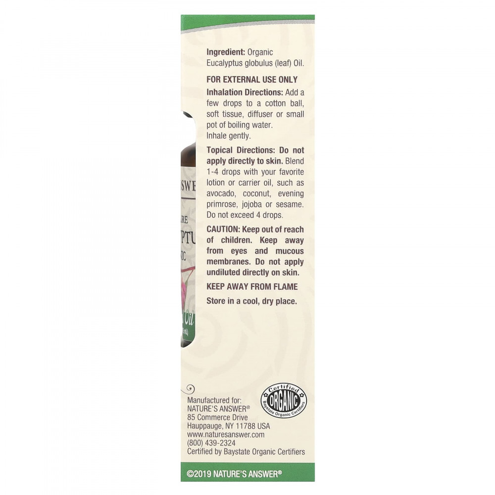 Nature's Answer, Органическое эфирное масло, 100% чистый эвкалипт, 15 мл