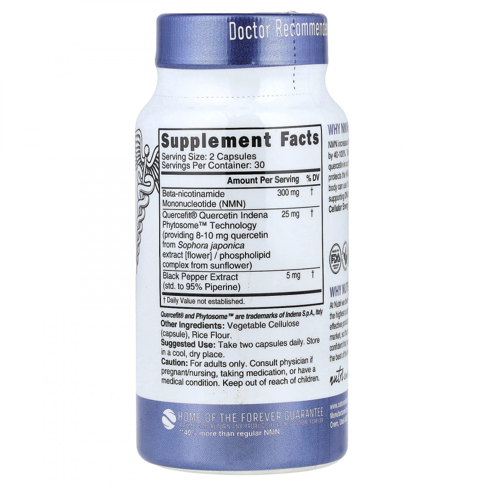 NMN повышает уровень НАД+ на 40–100%. Добавленный кверцетин в нашей формуле защищает НАД+, чтобы ваш организм мог использовать его дольше, поддерживая восстановление ДНК и клеточную энергию.