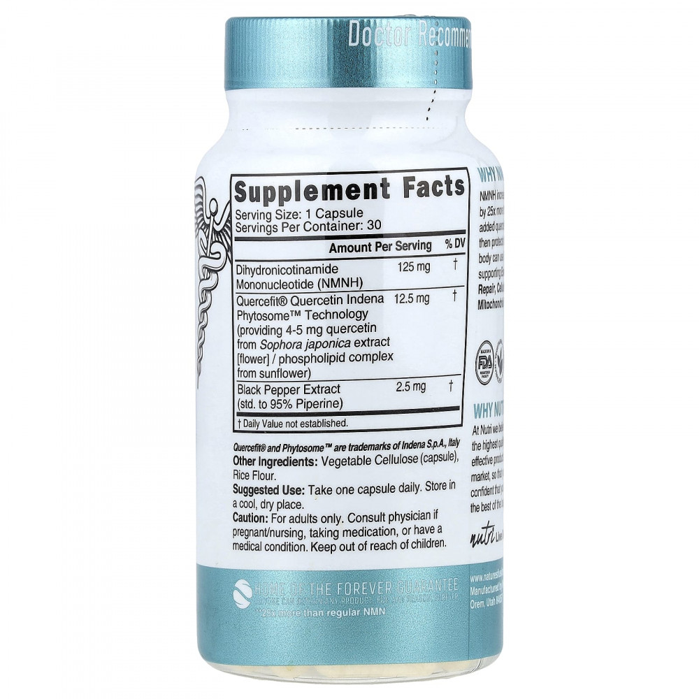 NMNH увеличивает уровень НАД+ в 25 раз больше, чем NMN. Кверцетин, добавленный в нашу формулу, затем защищает НАД+, чтобы организм мог использовать его дольше, поддерживая активность, восстановление ДНК, клеточную энергию и работу митохондрий.