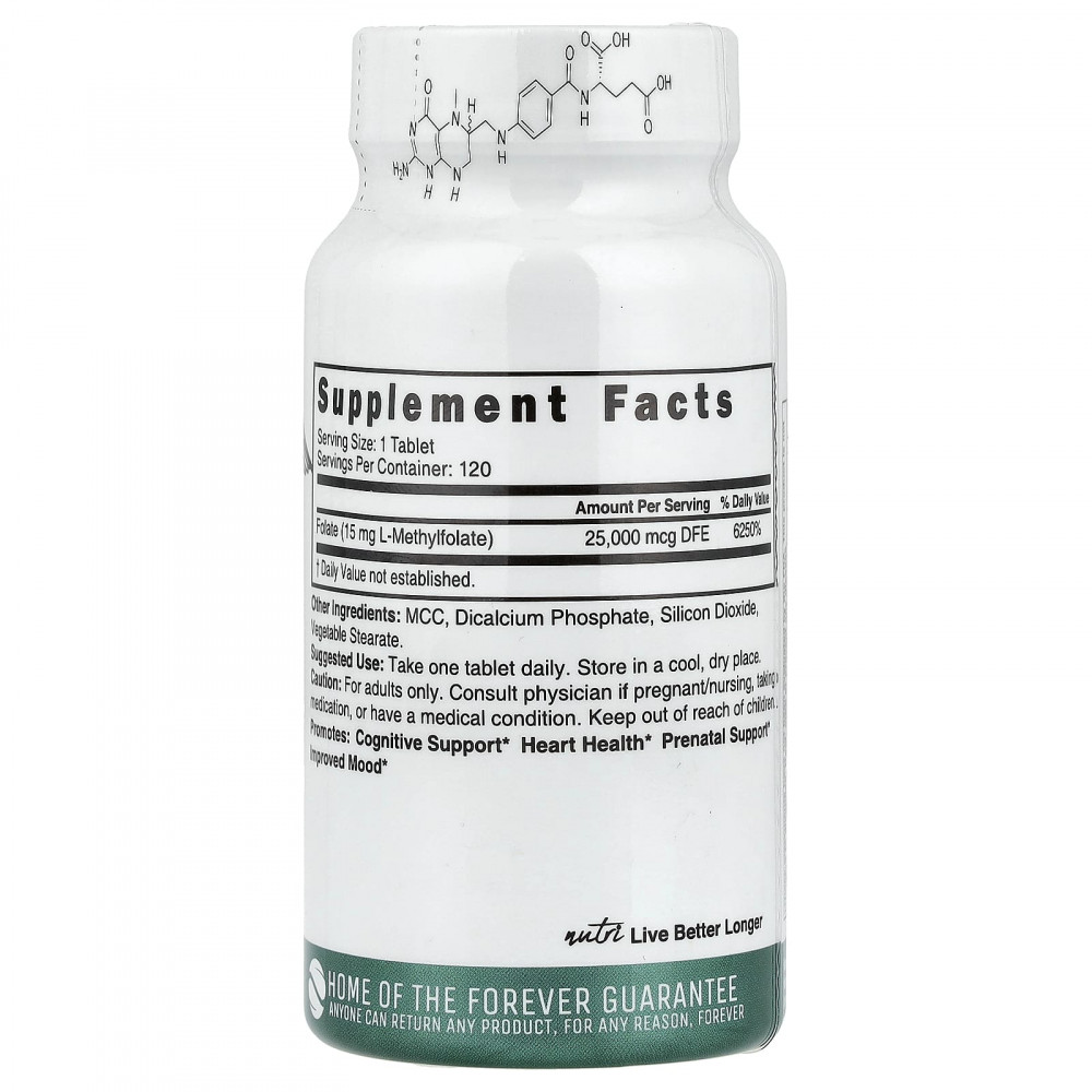 | Фолат (15 мг L-метилфолата) | 25 000 мкг DFE | 6250% |