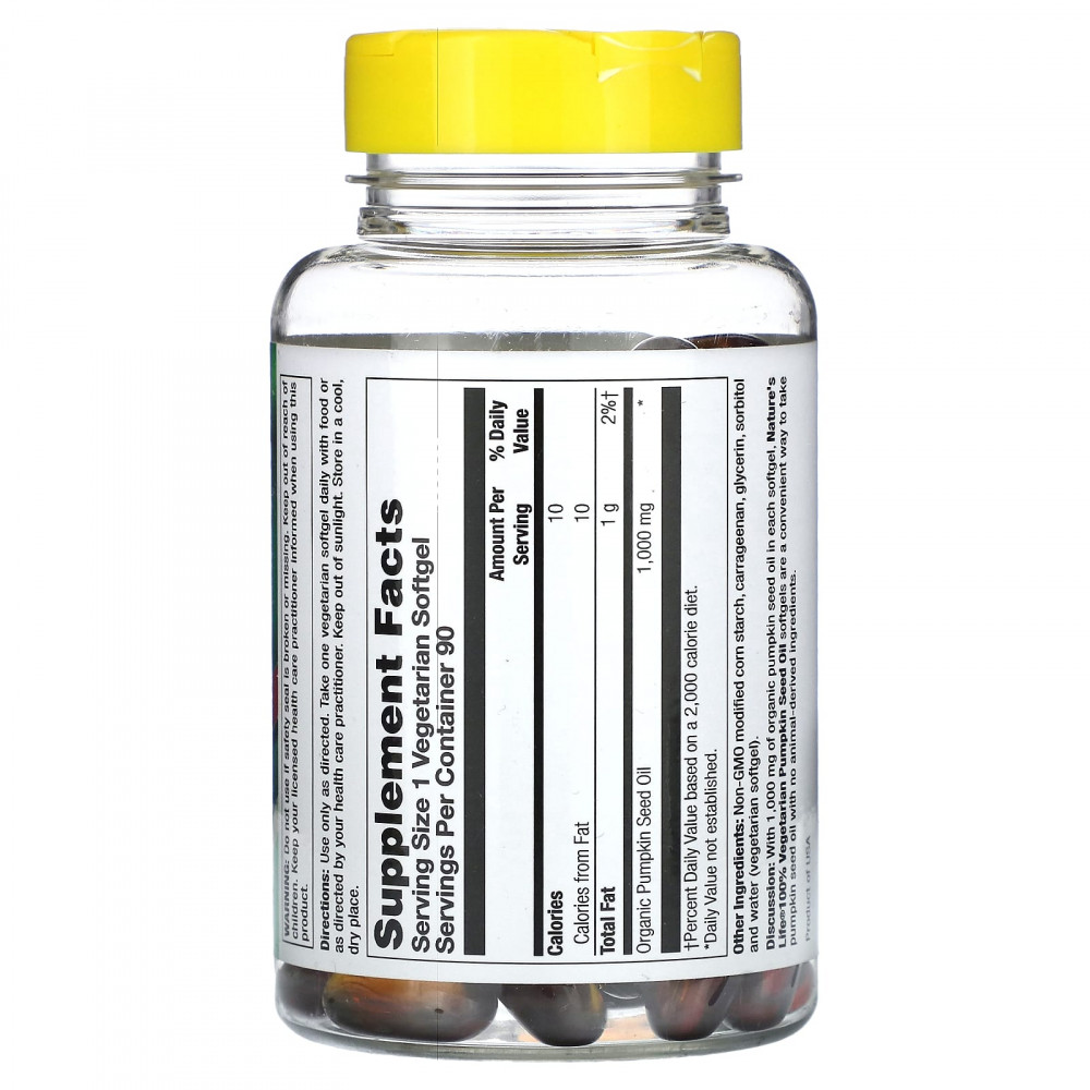 Описание. 100% вегетарианское масло из семян тыквы от Nature's Life® содержит 1000 мг органического масла из семян тыквы в каждой капсуле. Это удобный способ принимать масло из семян тыквы без ингредиентов животного происхождения.