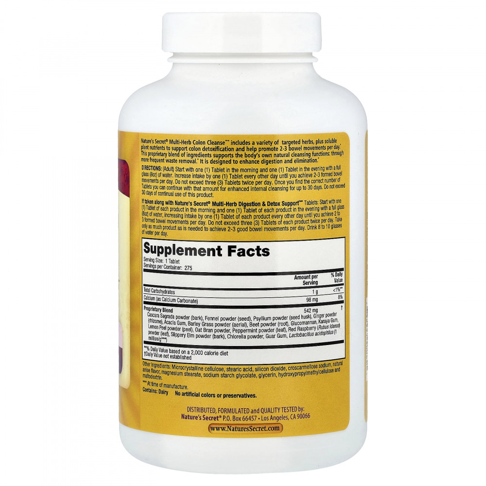 Добавка Multi-Herb Colon Cleanse™ от Nature's Secret® содержит множество целевых трав, а также растворимые растительные питательные вещества для поддержки детоксикации толстой кишки и содействия опорожнению кишечника 2–3 раза в день. Эта запатентованная смесь ингредиентов поддерживает естественные очищающие функции организма за счёт более частого выведения шлаков. Она разработана для улучшения пищеварения и устранения токсинов.