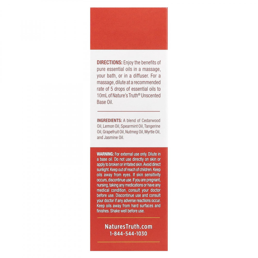 Наслаждайтесь преимуществами чистых эфирных масел во время массажа, в ванне или в диффузоре. Для массажа разбавьте рекомендуемую дозу: 5 капель эфирных масел в 10 мл базового масла Nature's Truth® без запаха.