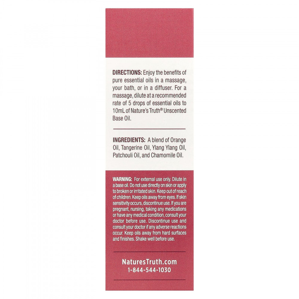 Наслаждайтесь полезными свойствами чистых эфирных масел во время массажа, принимая ванну или включив диффузор. Для массажа разбавьте согласно рекомендациям: 5 капель эфирного масла на 10 мл базового масла без запаха от Nature's Truth®.
