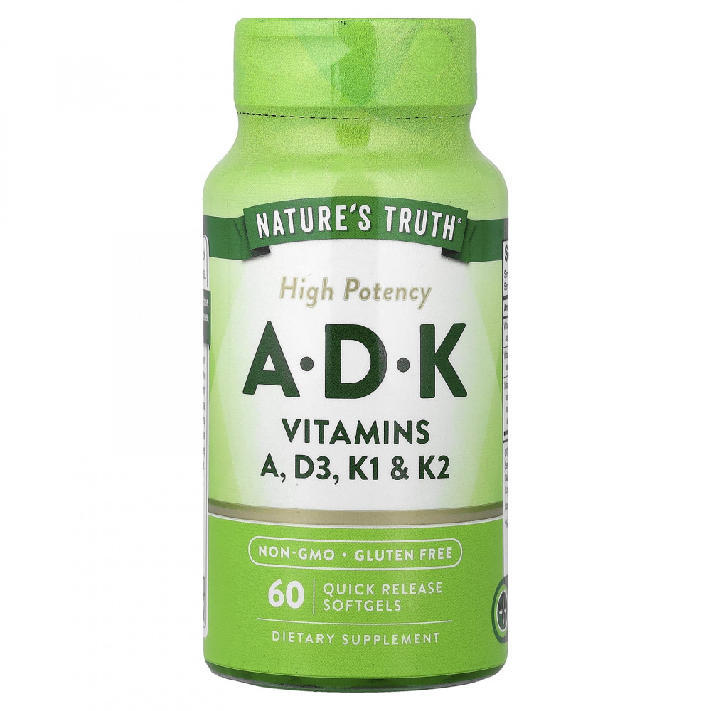 Получите три ежедневных витамина в одной быстро высвобождаемой капсуле Nature's Truth! Одна капсула в день — это все, что вам нужно, чтобы обеспечить поддержку от витамина A в виде ретинилпальмитата, витамина D в виде холекальциферола D3, витамина K1 в виде фитонадиона и витамина K2 в виде MK-4 и MK-7.