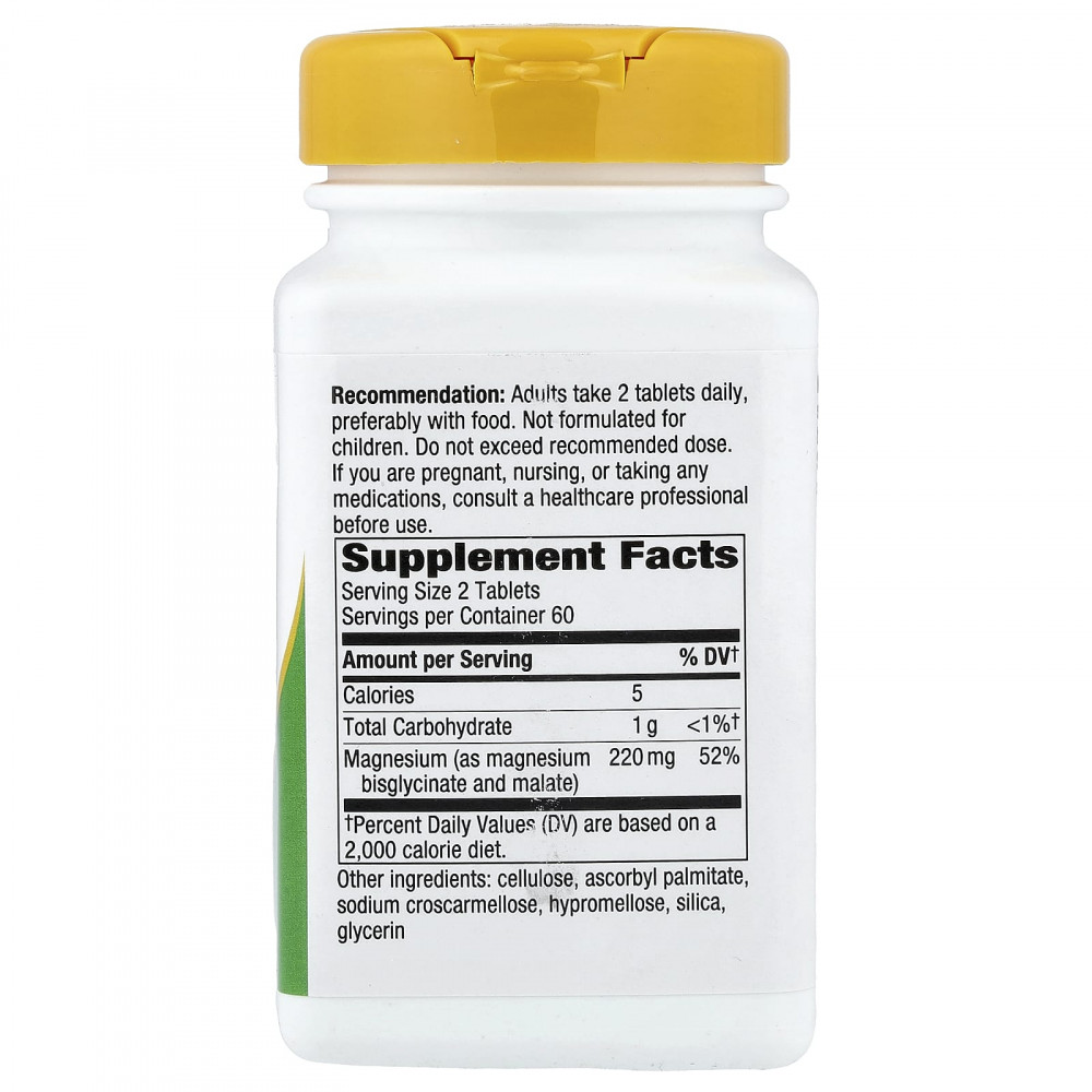 | Магний (в виде бисглицината и малата магния) | 220 мг | 52% |