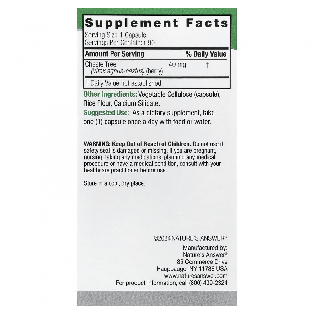 | Chaste Tree (Vitex agnus-castus) (ягоды) | 40 мг | † |