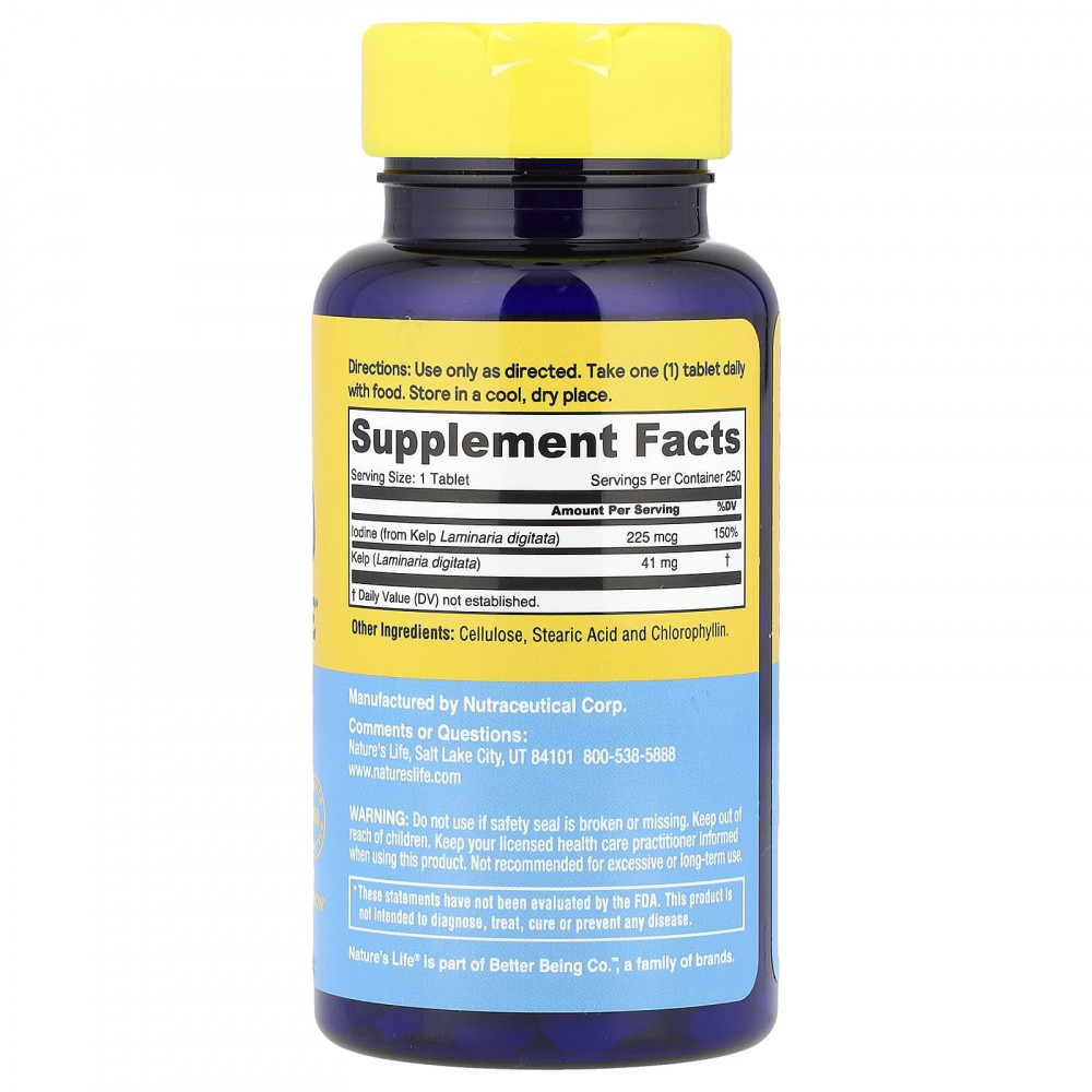 | Йод (из морских водорослей Laminaria digitata) | 225 мкг | 150% |