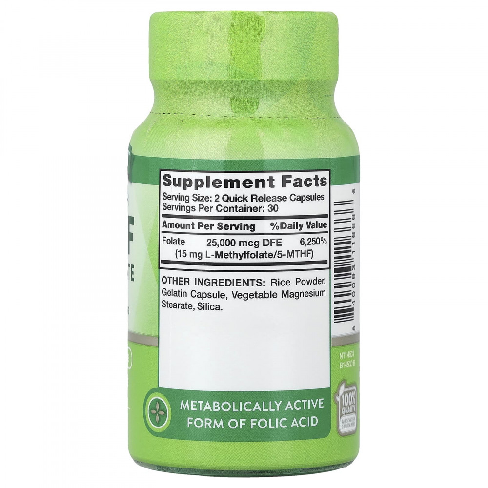 Воспользуйтесь преимуществами фолата в его метаболически активной форме с 15 мг L-метилфолата Nature's Truth®! Эти капсулы с быстрым высвобождением содержат дополнительный источник L-метилфолата, незаменимого витамина группы B, который задает тон на весь день. Фолат, также известный как фолиевая кислота, представляет собой растворимый в воде витамин B. Водорастворимые витамины усваиваются гораздо быстрее и выводятся из организма так же быстро, как и усваиваются. Поскольку наш организм не производит и не накапливает водорастворимые витамины, нам необходимо постоянно снабжать свой организм этими витаминами ежедневно.