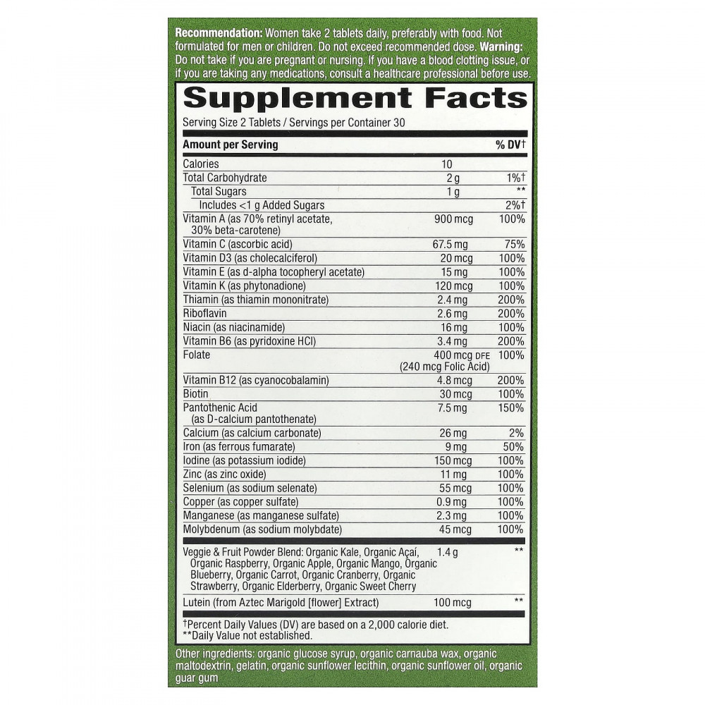 †† 1,4 г смеси овощей и фруктов на порцию. Каждая порция из 2 таблеток эквивалентна 1 стакану листовой зелени (объем до сушки).