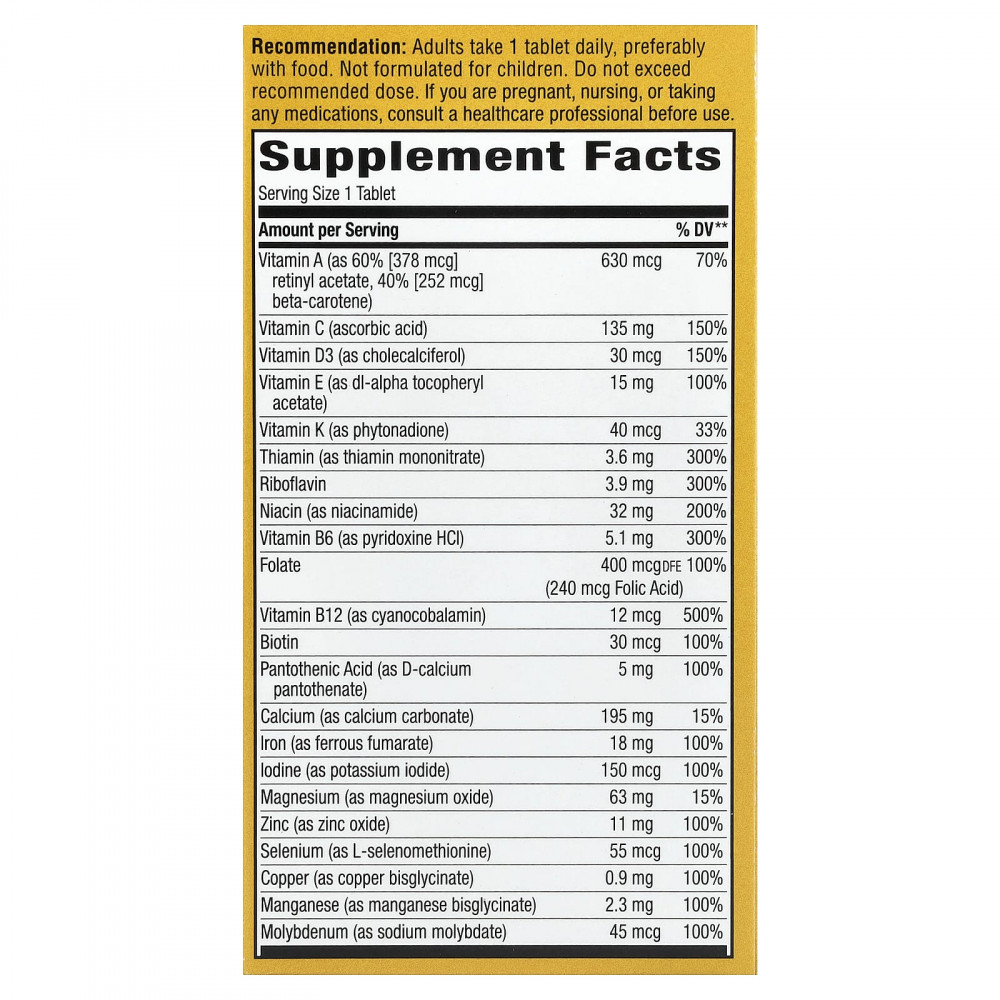 | Йод (в виде йодида калия) | 150 мкг | 100% |