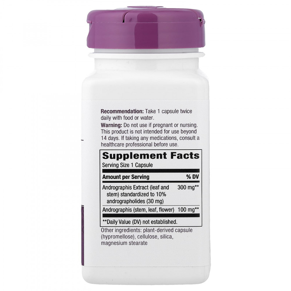 | Экстракт андрографиса (листьев и стеблей), стандартизированный до 10% андрографолидов (30 мг) | 300 мг | ** |