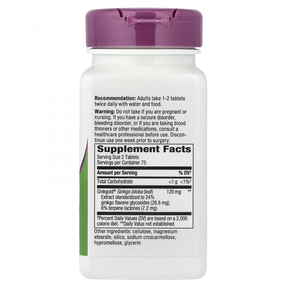 | Ginkgold® Экстракт листьев гинкго билоба, стандартизированный до 24% флавоновых гликозидов гинкго (28,8 мг), 6% терпеновых лактонов (7,2 мг) | 120 мг | ** |