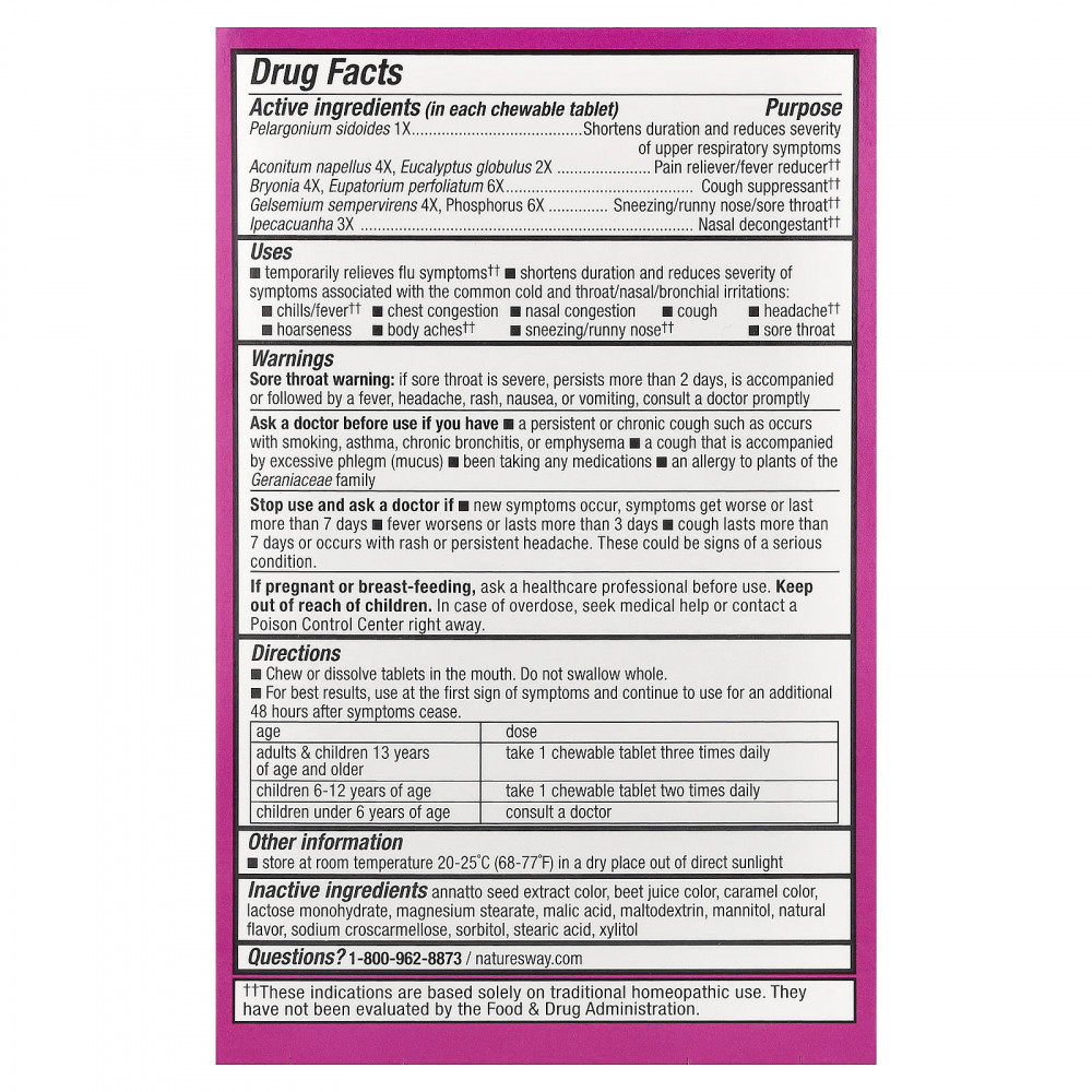 Универсальное средство для облегчения симптомов простуды и гриппа с клинически подтвержденными экстрактами пеларгонии сидовидной (Pelargonium sidoides) 1X и Alpha® CF (борец клобучковый (Aconitum napellus) 4X, бриония (Bryonia) 4X, эвкалипт (Eucalyptus globulus) 2X, посконник (Eupatorium perfoliatum) 6X, гельземиум вечнозеленый (Gelsemium sempervirens) 4X, ипекакуана (Ipecacuanha) 3X и фосфор 6X).