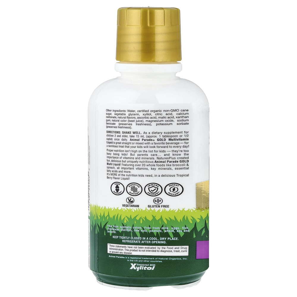 Дети не заботятся о правильном питании - они слишком заняты своими детскими делами.Но родители заботятся и знают о важности витаминов и минералов.Компания Natures Plus создала веселые, вкусные и питательные жидкие мультивитамины Animal Parade GOLD Multi!содержит более 20 цельных продуктов, таких как брокколи и шпинат, все важные витамины, ключевые минералы, незаменимые жирные кислоты и многое другое.